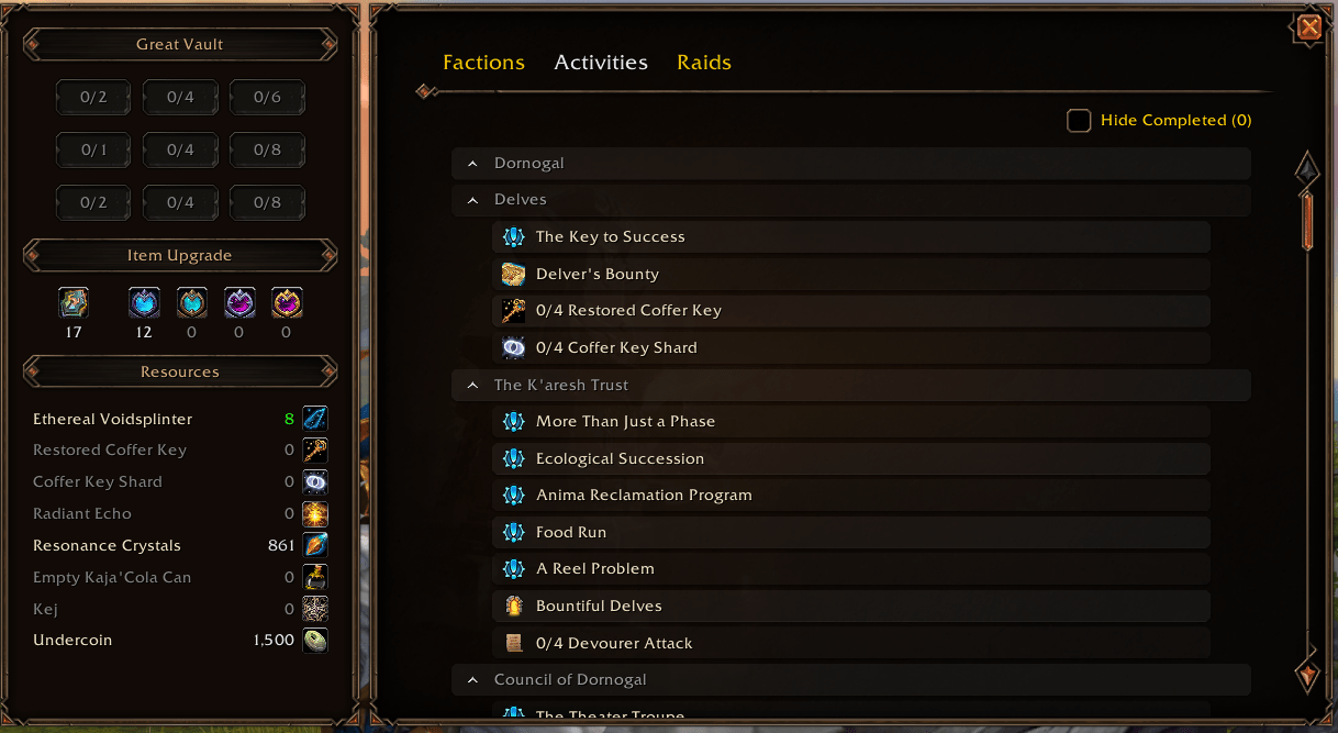 Reputation and raid tracking hub